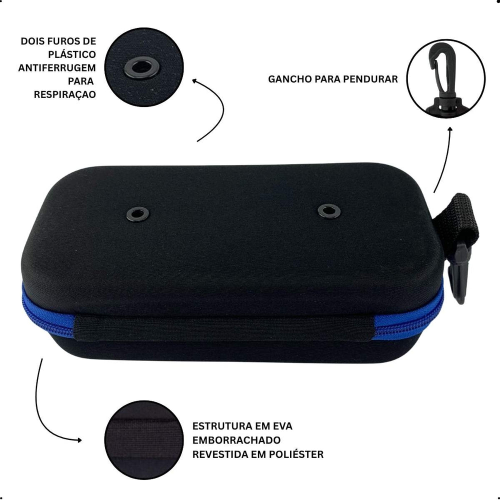 O Estojo Porta Óculos Natação Medinas Logo é perfeito para atividades aquáticas em que os equipamentos ficam úmidos e precisam secar de forma eficiente para aumentar sua durabilidade. Este estojo apresenta um compartimento interno e dois orifícios estrategicamente posicionados para permitir a ventilação e remoção da umidade dos itens armazenados. Além disso, vem equipado com um gancho prático para pendurá-lo e transportá-lo com facilidade. Mantenha seus equipamentos protegidos, secos e organizados em sua mochila. O estojo também tem capacidade para acomodar um celular.