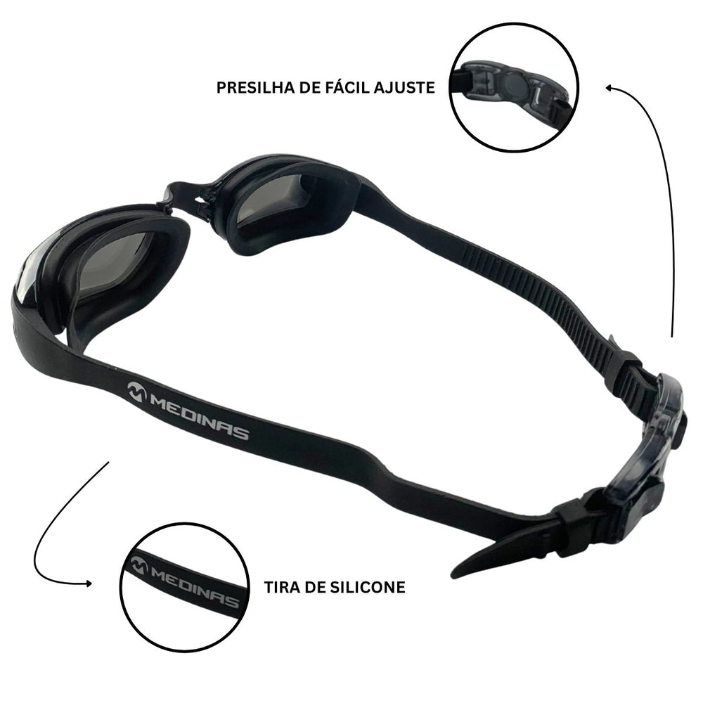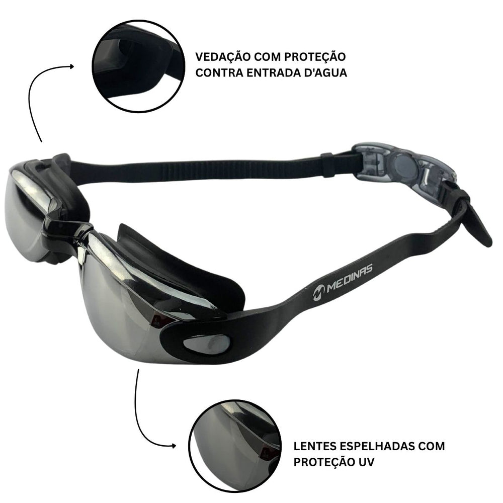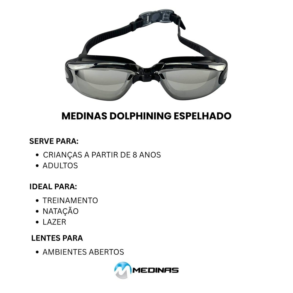 Os Óculos de Natação Espelhado Medinas Dolphining Profissional Antiembaçante combinam inovação, conforto e desempenho em um design pensado para nadadores exigentes. Com lentes em policarbonato resistentes, película antiembaçante e proteção UV, garantem clareza e segurança mesmo nas condições mais desafiadoras. Seu formato “one-piece” de grande ângulo proporciona visibilidade ampla e proteção nas laterais durante treinos e competições.
