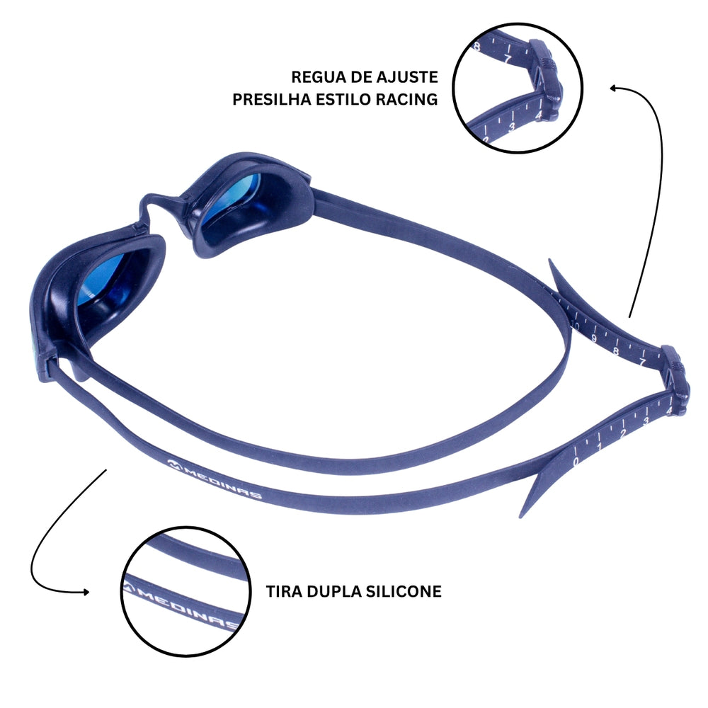 O Óculos de Natação Espelhado Medinas RayVision foi desenvolvido para oferecer o equilíbrio perfeito entre tecnologia, conforto e performance. Ideal para treinos, competições, triathlon e águas abertas, esse modelo é inspirado na visão precisa e ágil das raias — garantindo amplitude visual, estabilidade e ajuste perfeito em qualquer ambiente aquático.