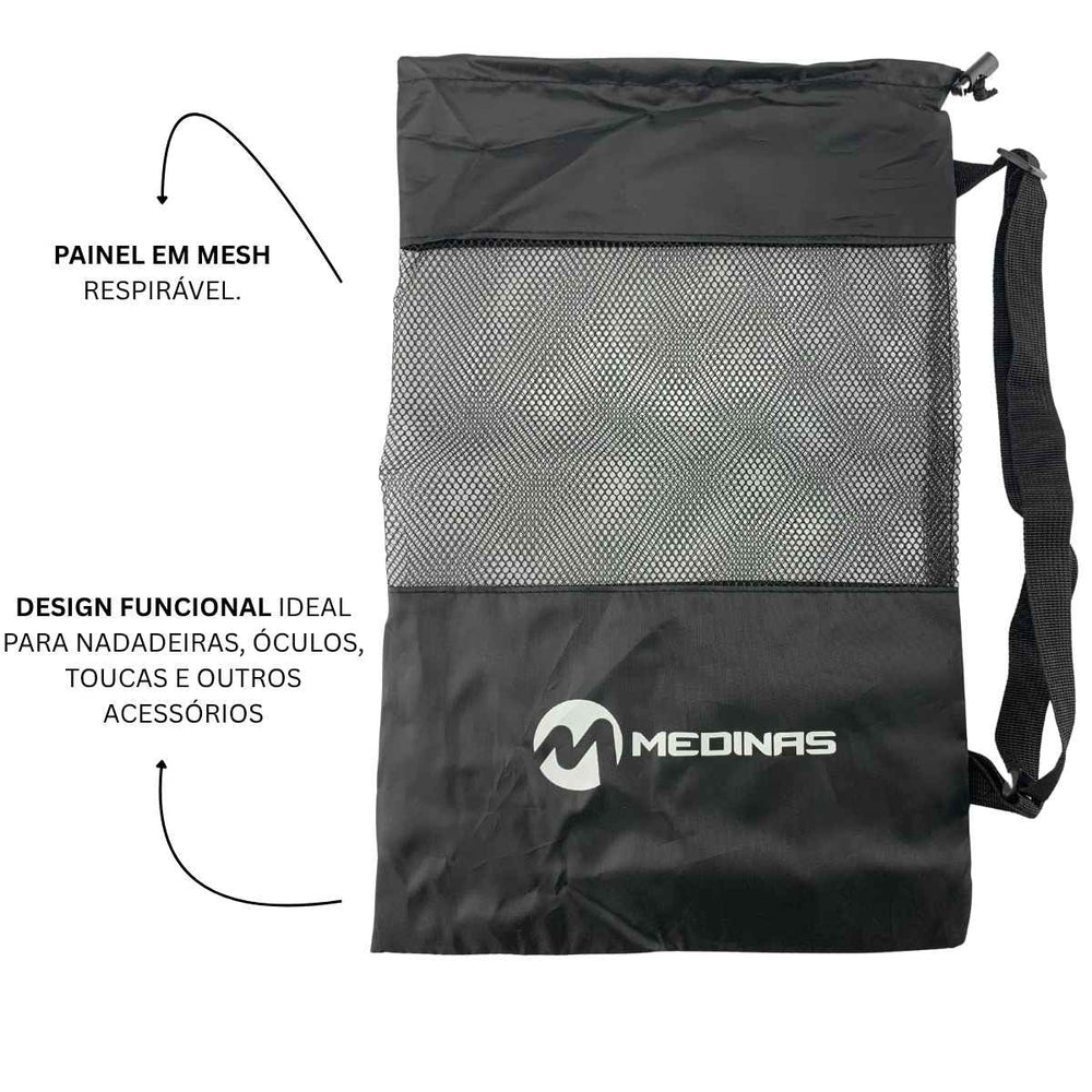 A Sacola Natação Medinas Mesh Classic é o acessório perfeito para quem busca praticidade e organização na rotina de treinos. Leve, resistente e funcional, ela foi desenvolvida especialmente para nadadores que precisam transportar seus equipamentos com conforto e segurança, mantendo tudo sempre seco e ventilado.